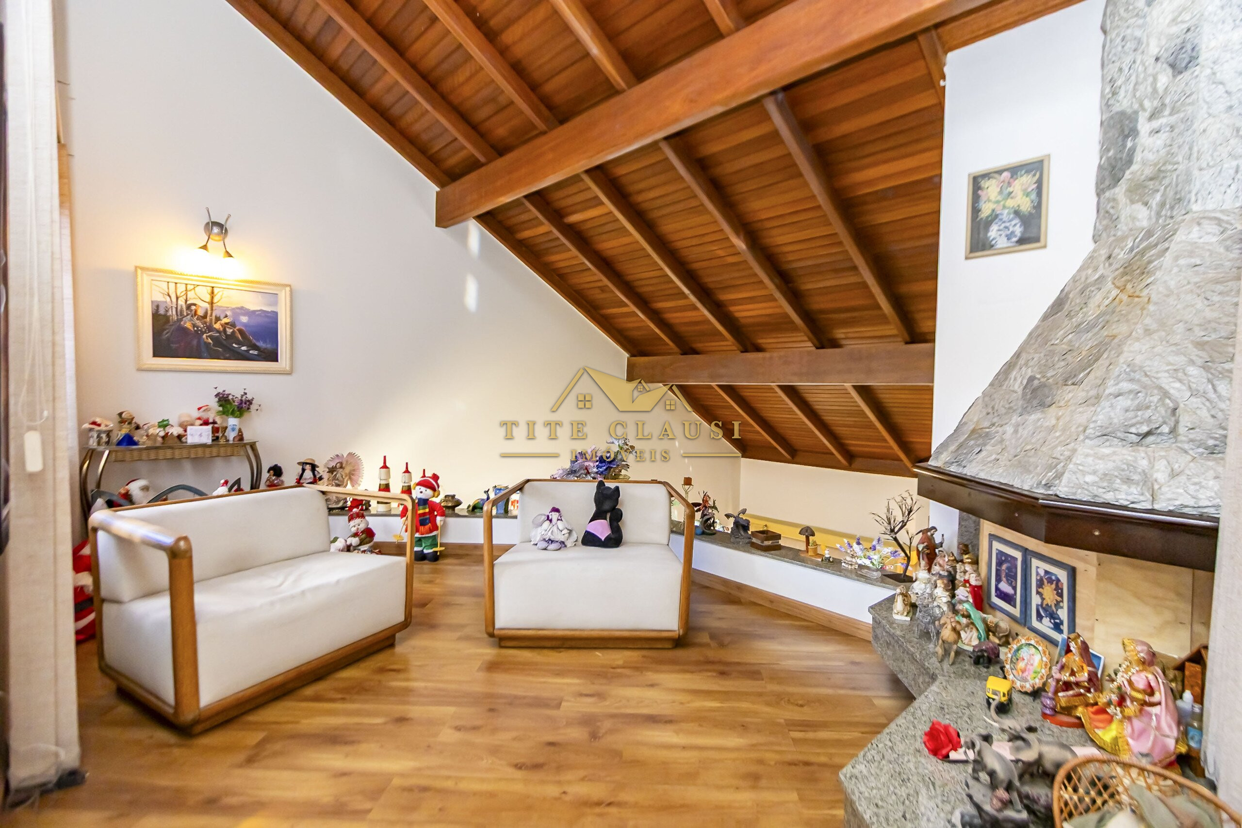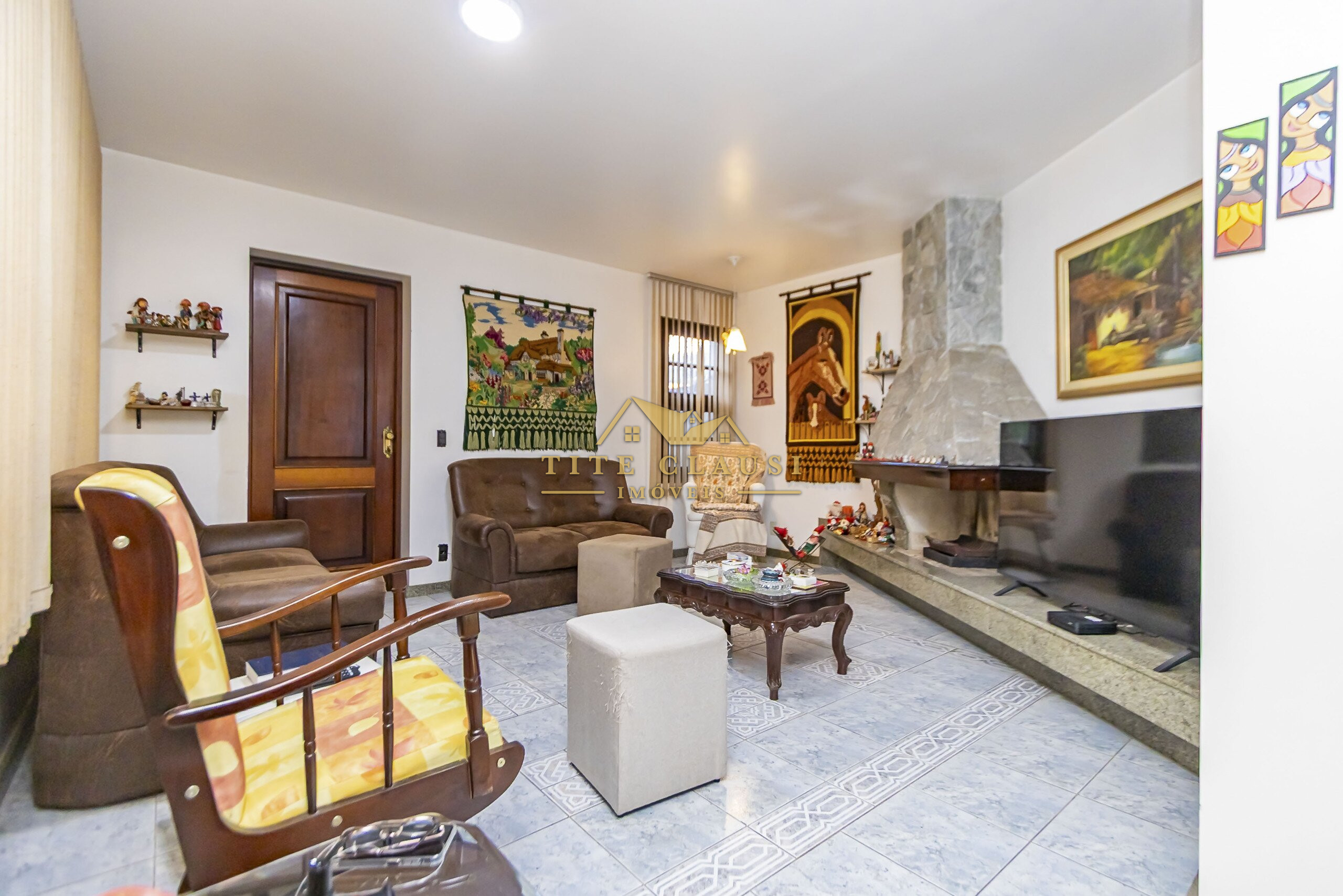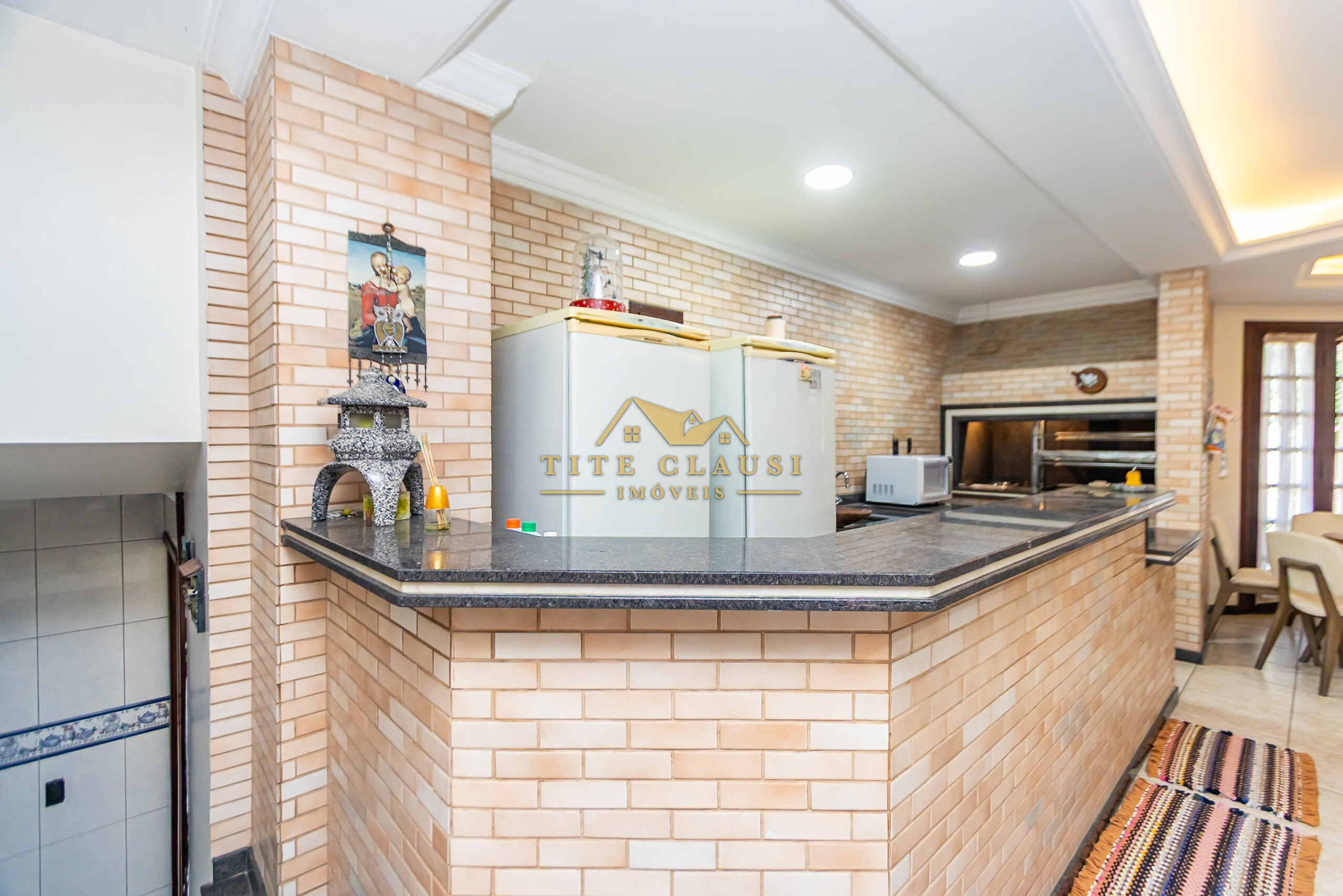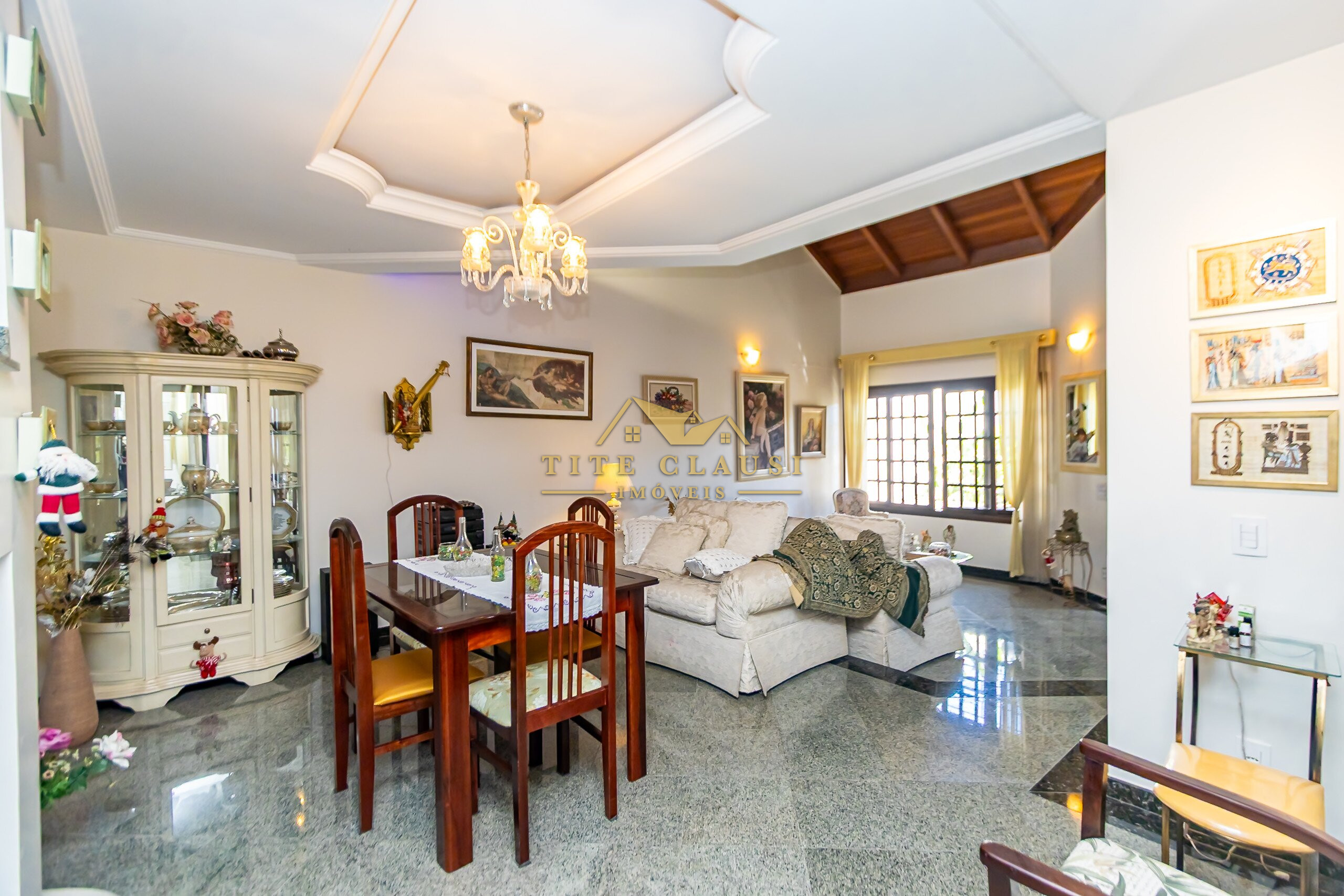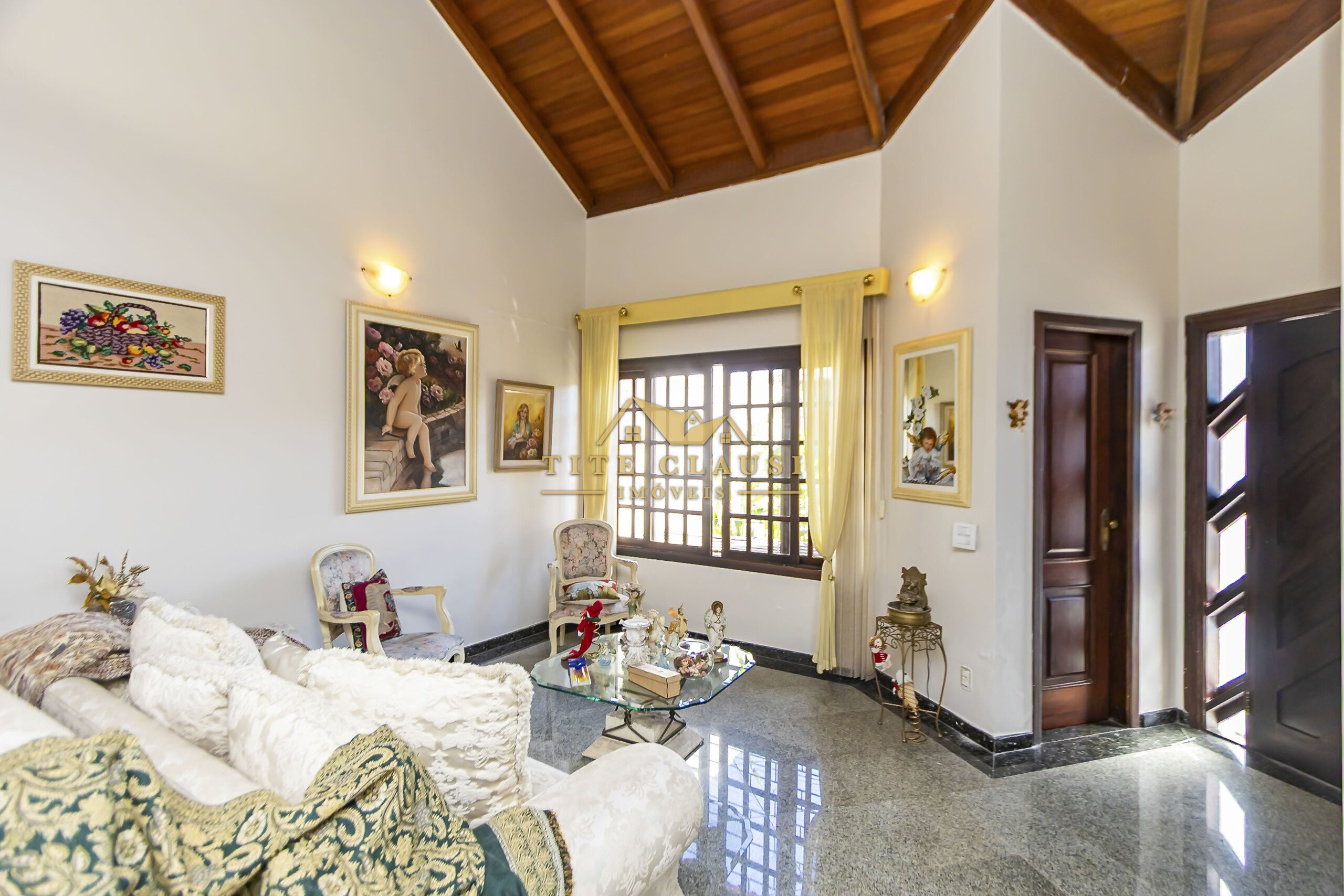 Primeiro pavimento: Ampla sala de TV com lareira. Salão com churrasqueira à carvão com grelha móvel e fogão à gás, bancada com armários e pia. Acesso direto para a cozinha. Banheiro grande com fácil acesso ao jardim dos fundos.