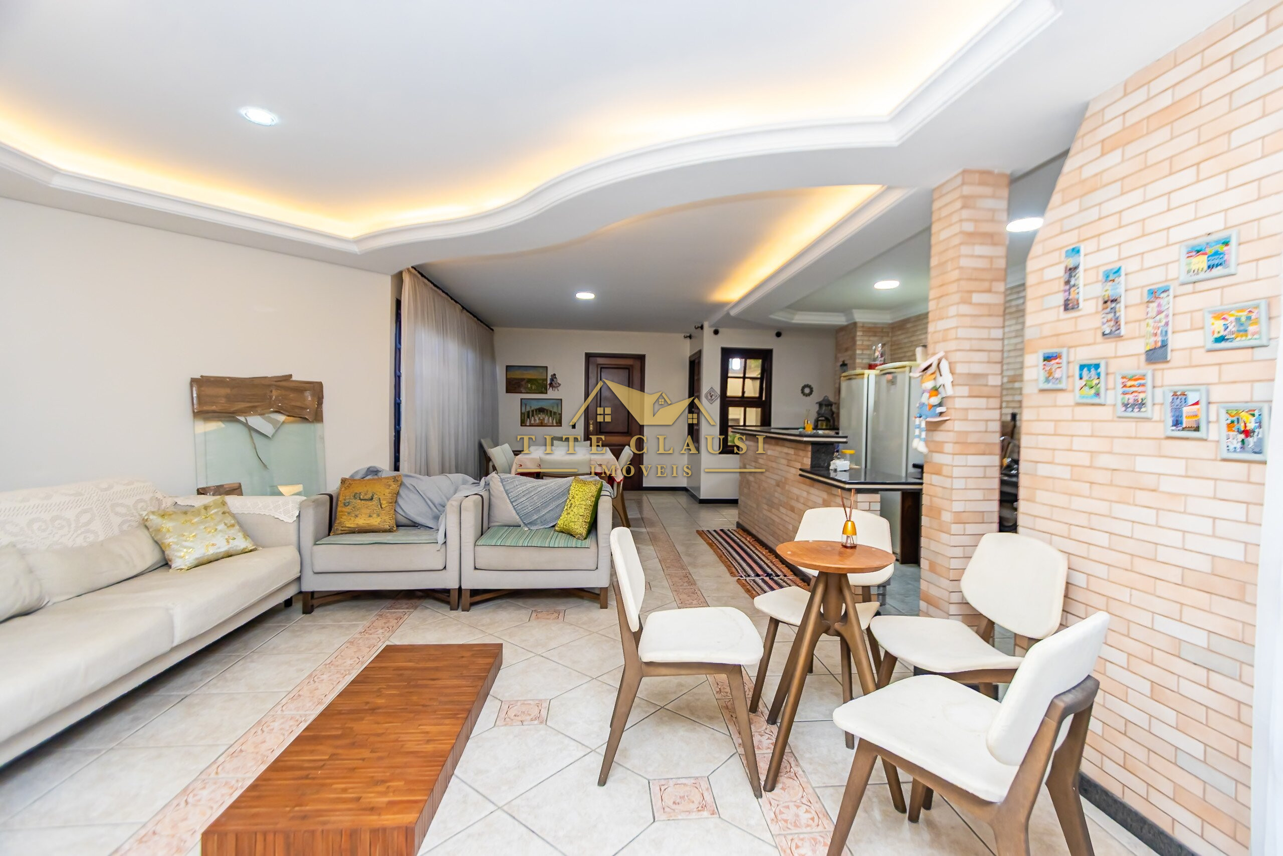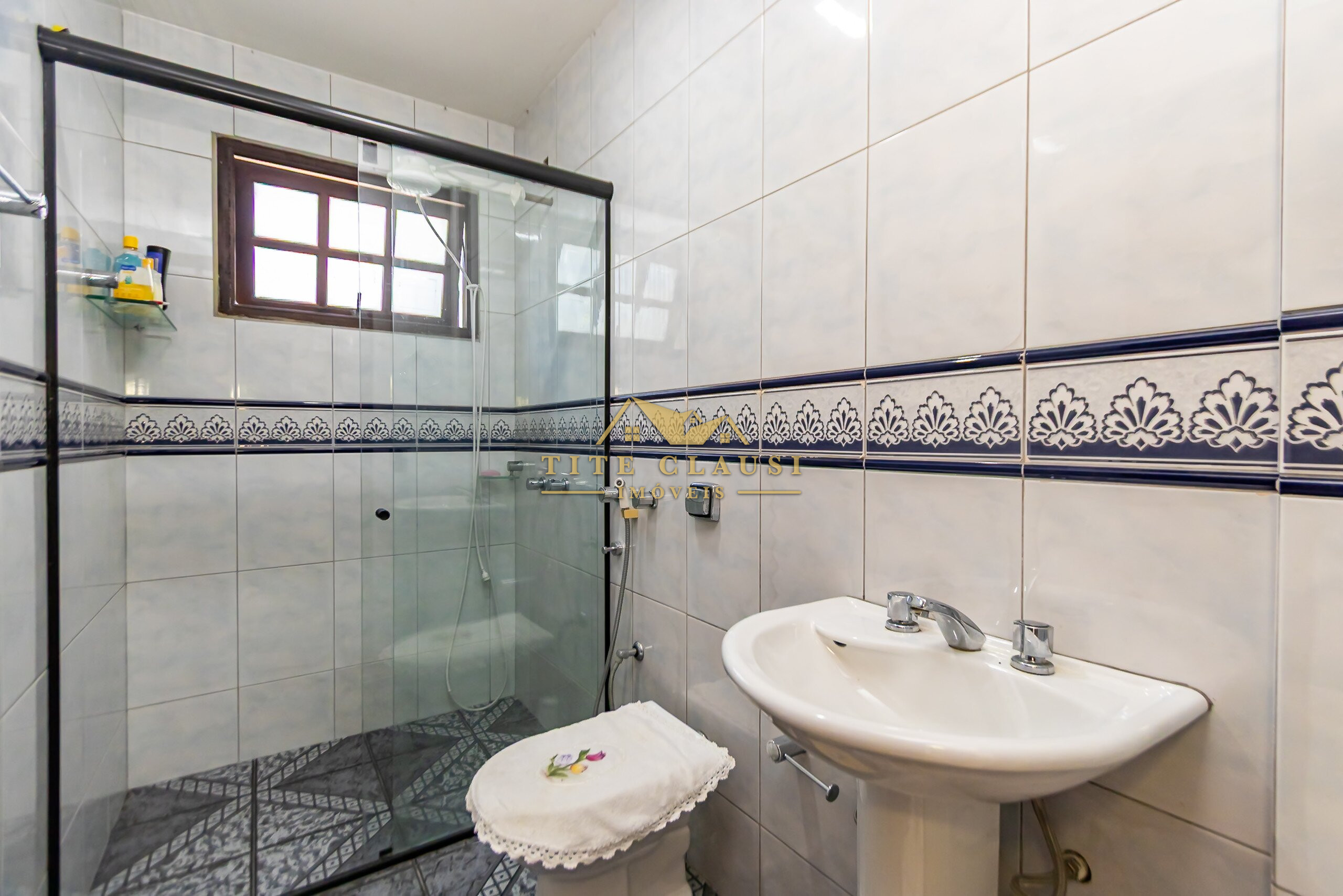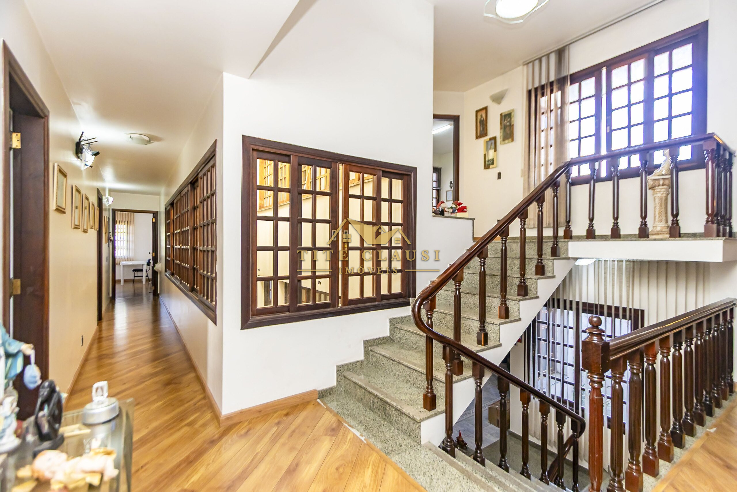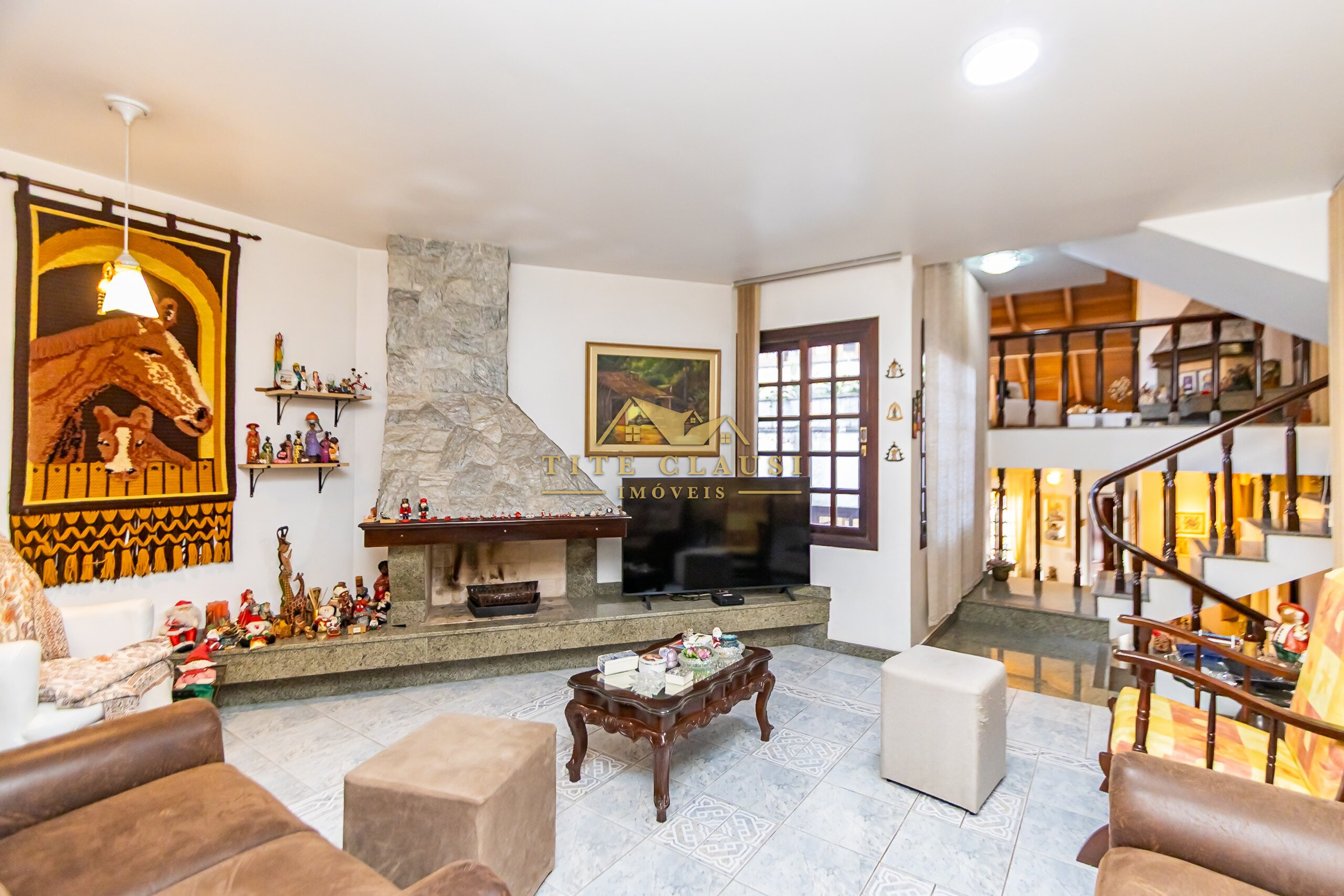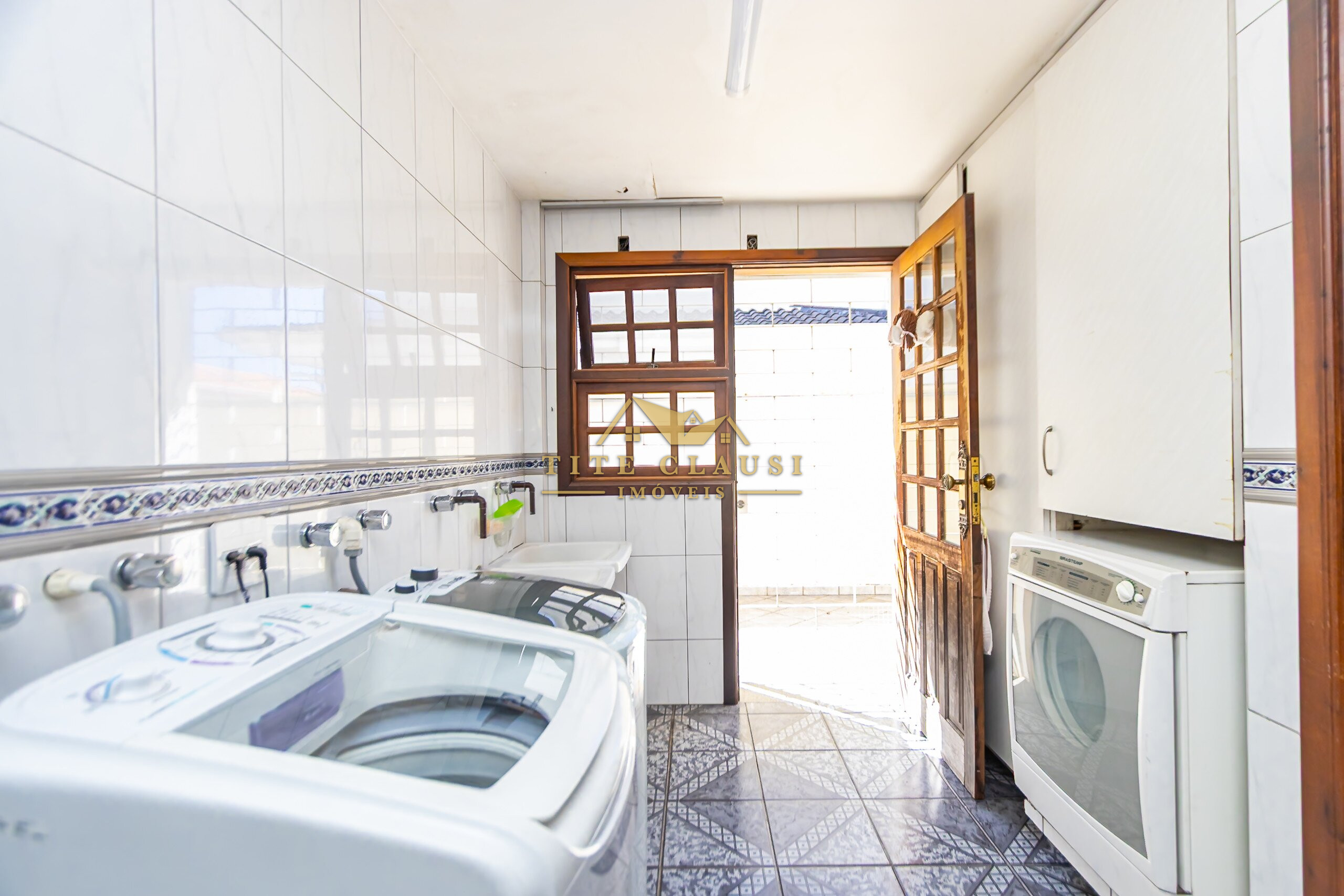 Primeiro pavimento: Ampla sala de TV com lareira. Salão com churrasqueira à carvão com grelha móvel e fogão à gás, bancada com armários e pia. Acesso direto para a cozinha. Banheiro grande com fácil acesso ao jardim dos fundos.