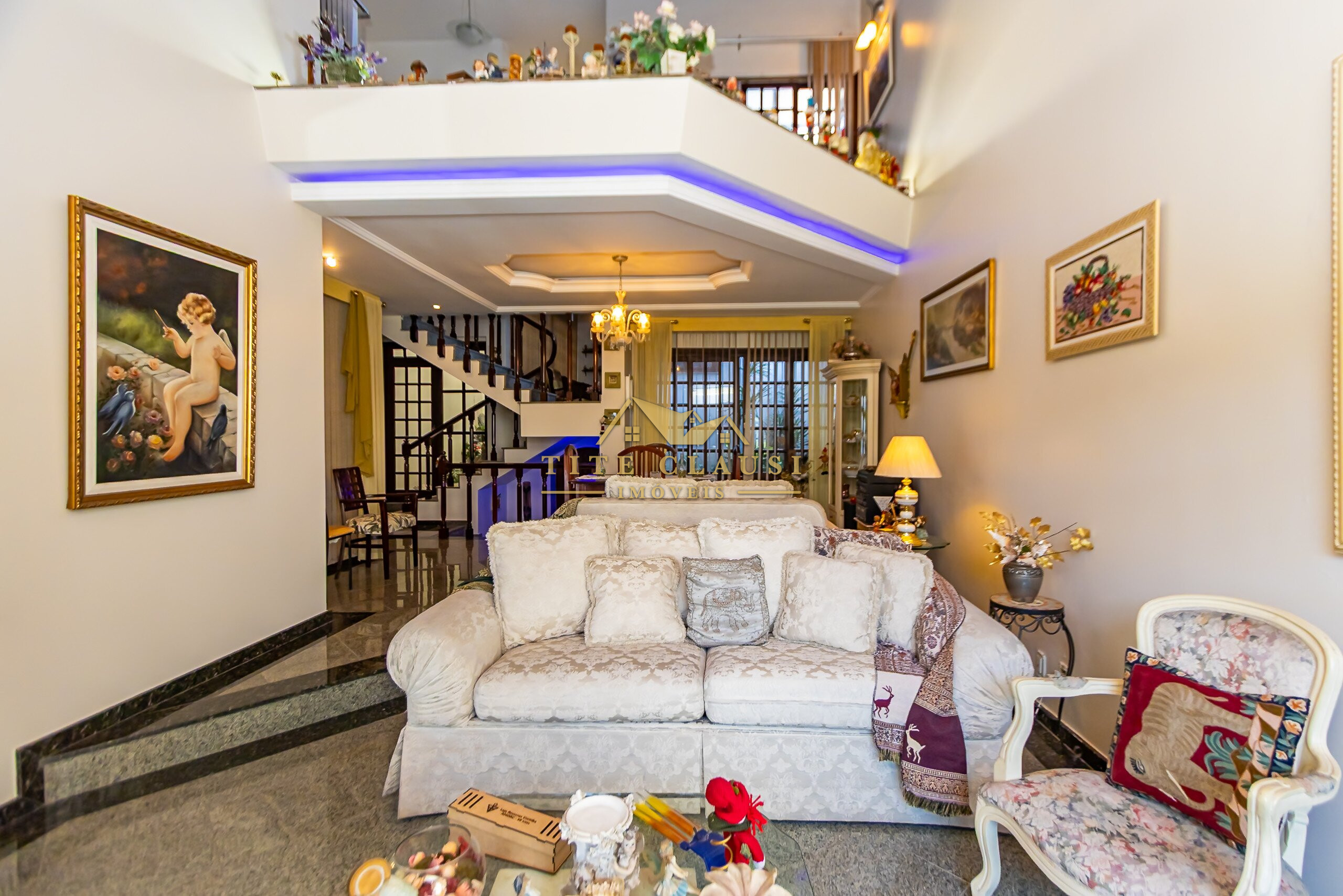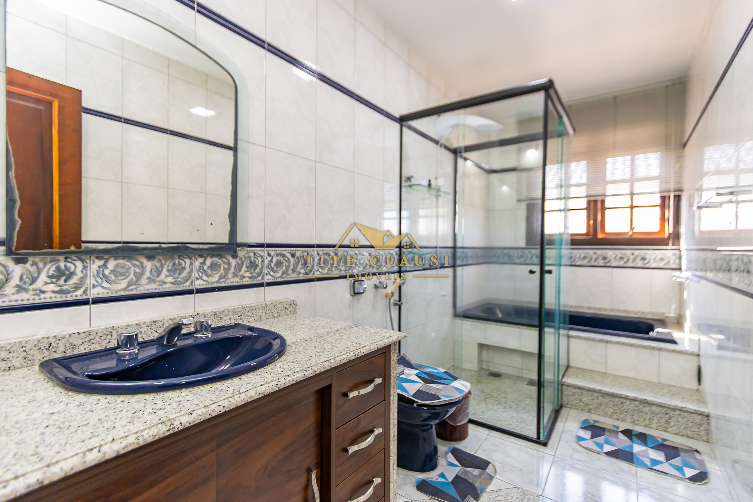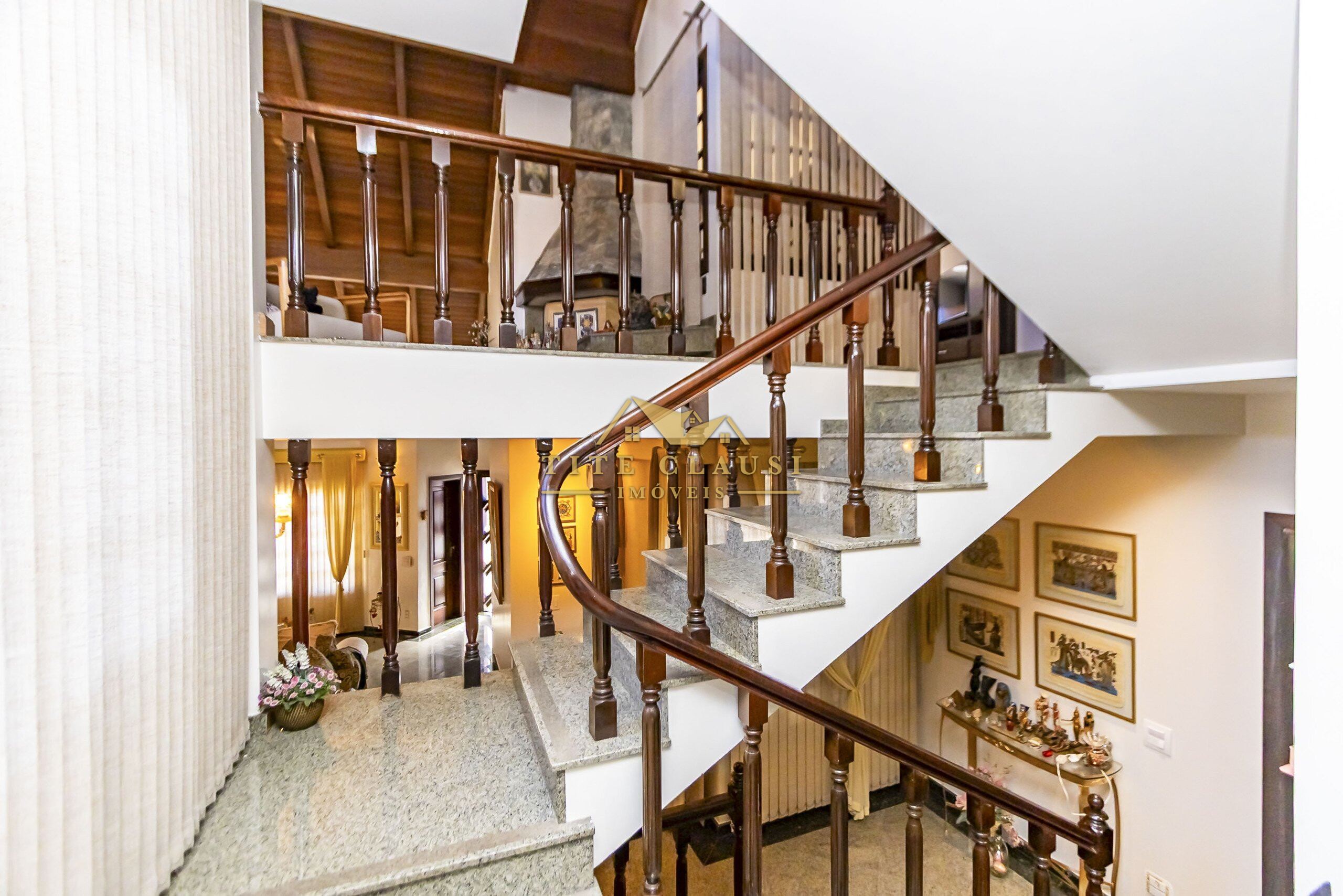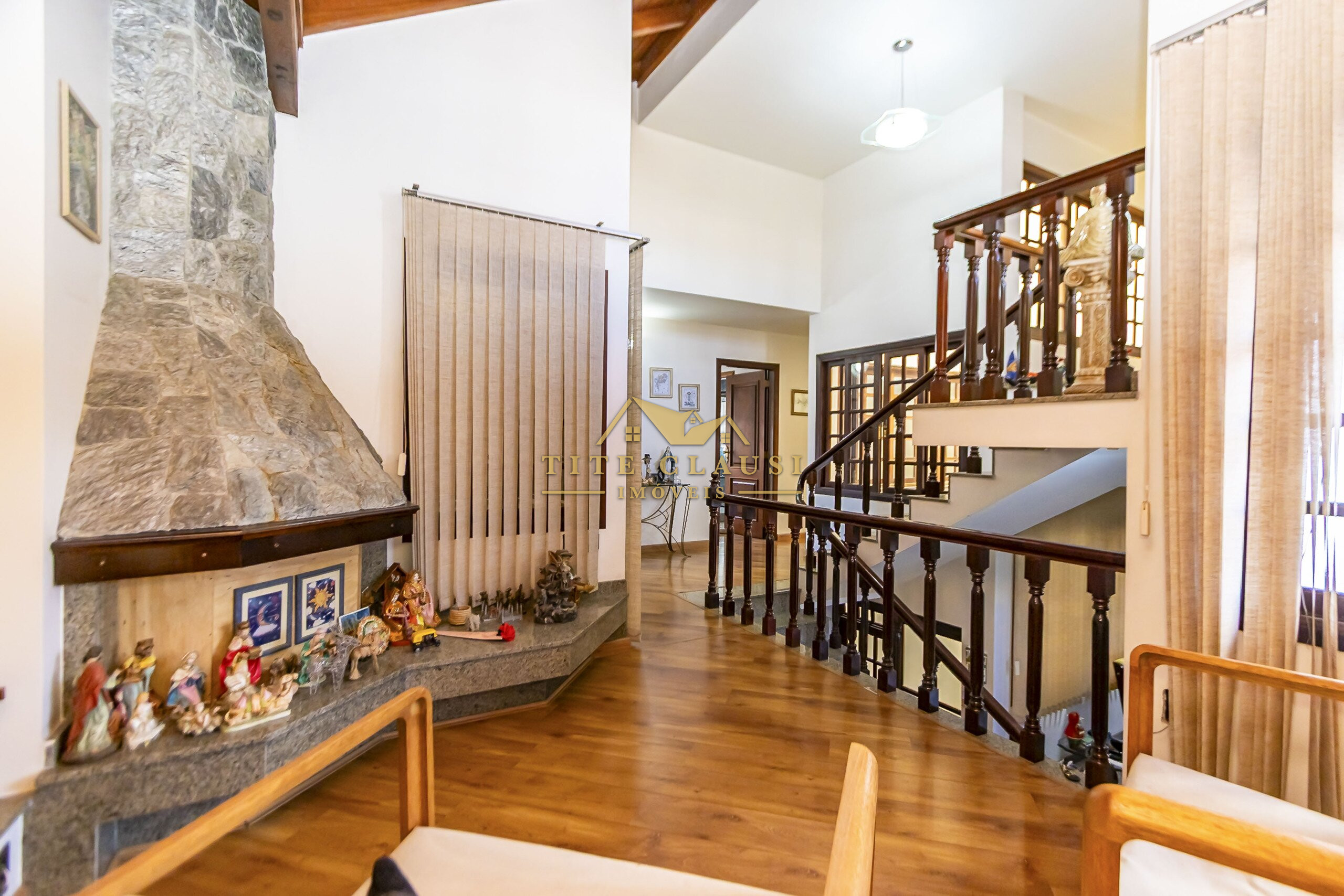 Segundo pavimento: Andar todo com piso laminado novo. Sala/mezanino com lareira. 4 suítes: Suíte master com closet, ampla sacada, banheiro com banheira de hidro redonda, piso em granito, box, armário e pia em granito. Suíte 2 com sacada, banheiro com banheira de hidro, piso cerâmico, box, armário e pia em granito. Suíte 3 com sacada, banheiro com banheira de hidro, piso cerâmico, box, armário e pia em granito. Suíte 4 com sacada, banheiro com banheira de hidro, piso cerâmico, box, armário e pia em granito.