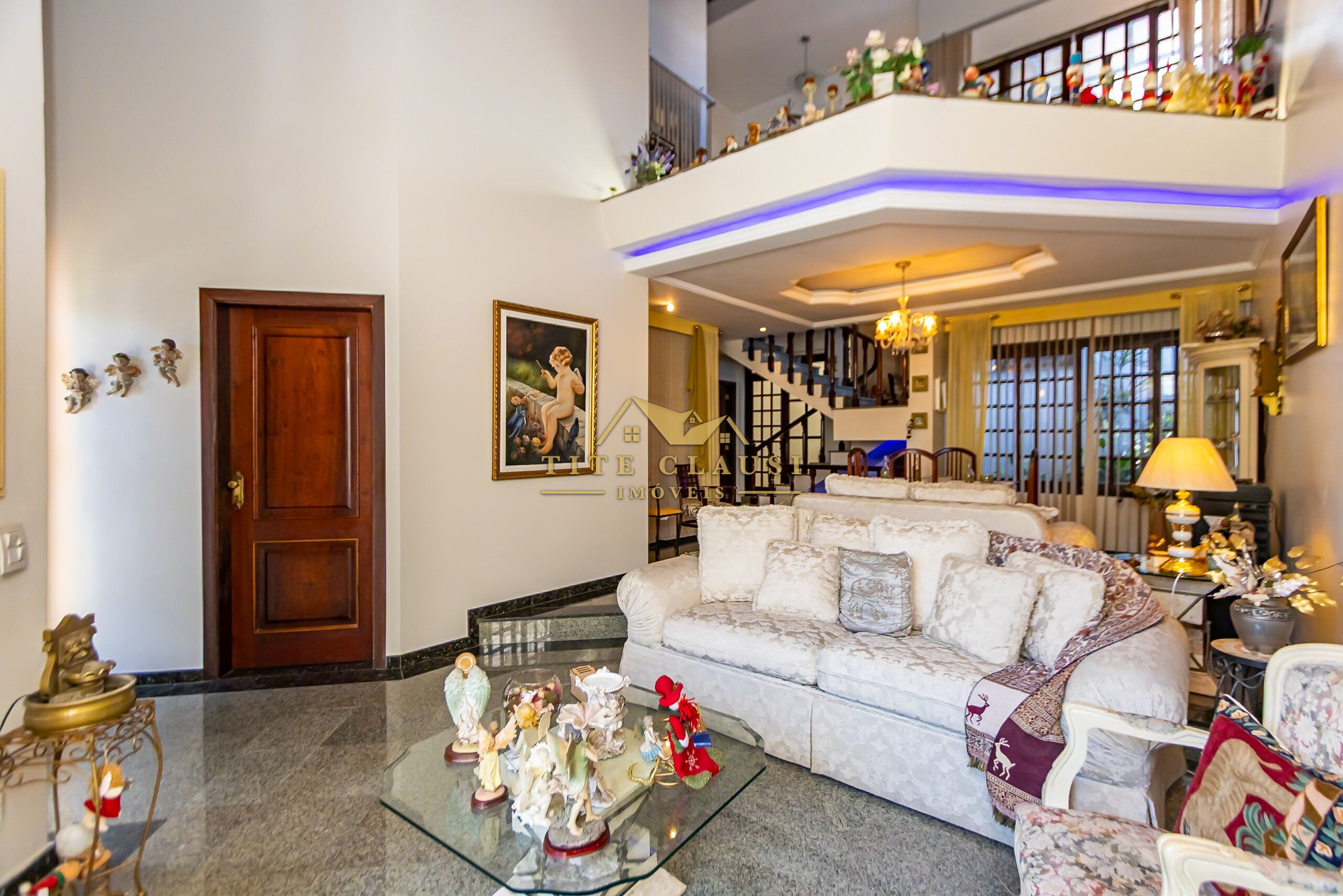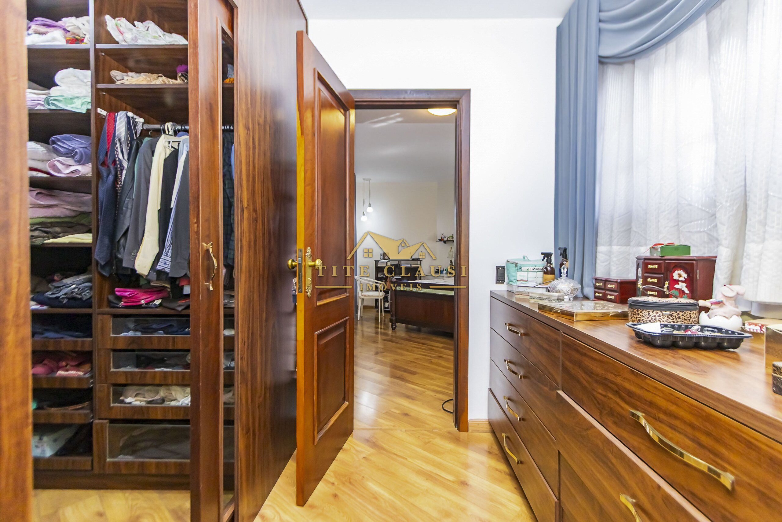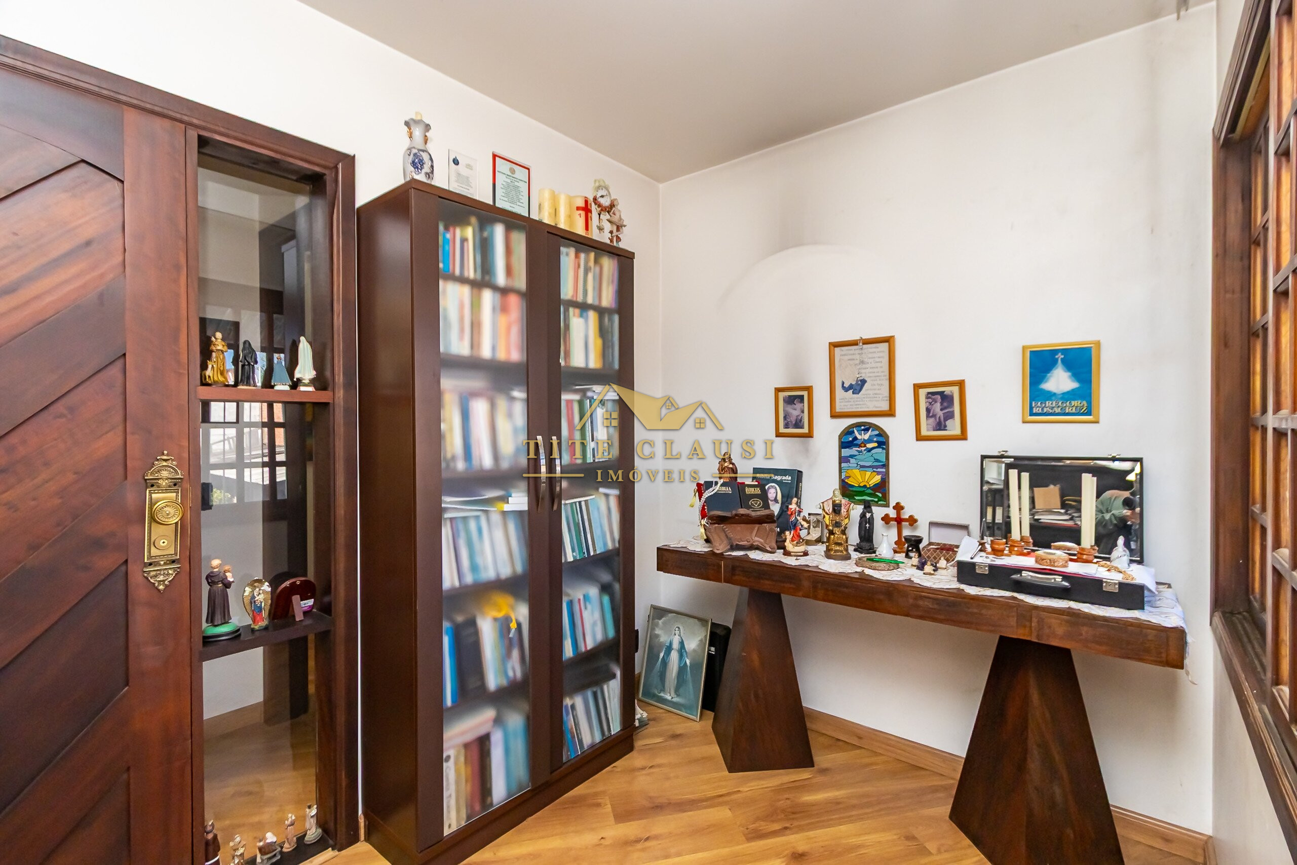 Pavimento térreo: Ampla sala com piso em granito em dois níveis e pé direito duplo. Escritório e lavabo. Jardim de inverno com fonte e cascata. Adega com armários, bancada e pia. Copa e cozinha com armários, despensa, lavabo, quarto/atelier, lavanderia com 2 tanques e armários, quarto de serviço com banheiro.