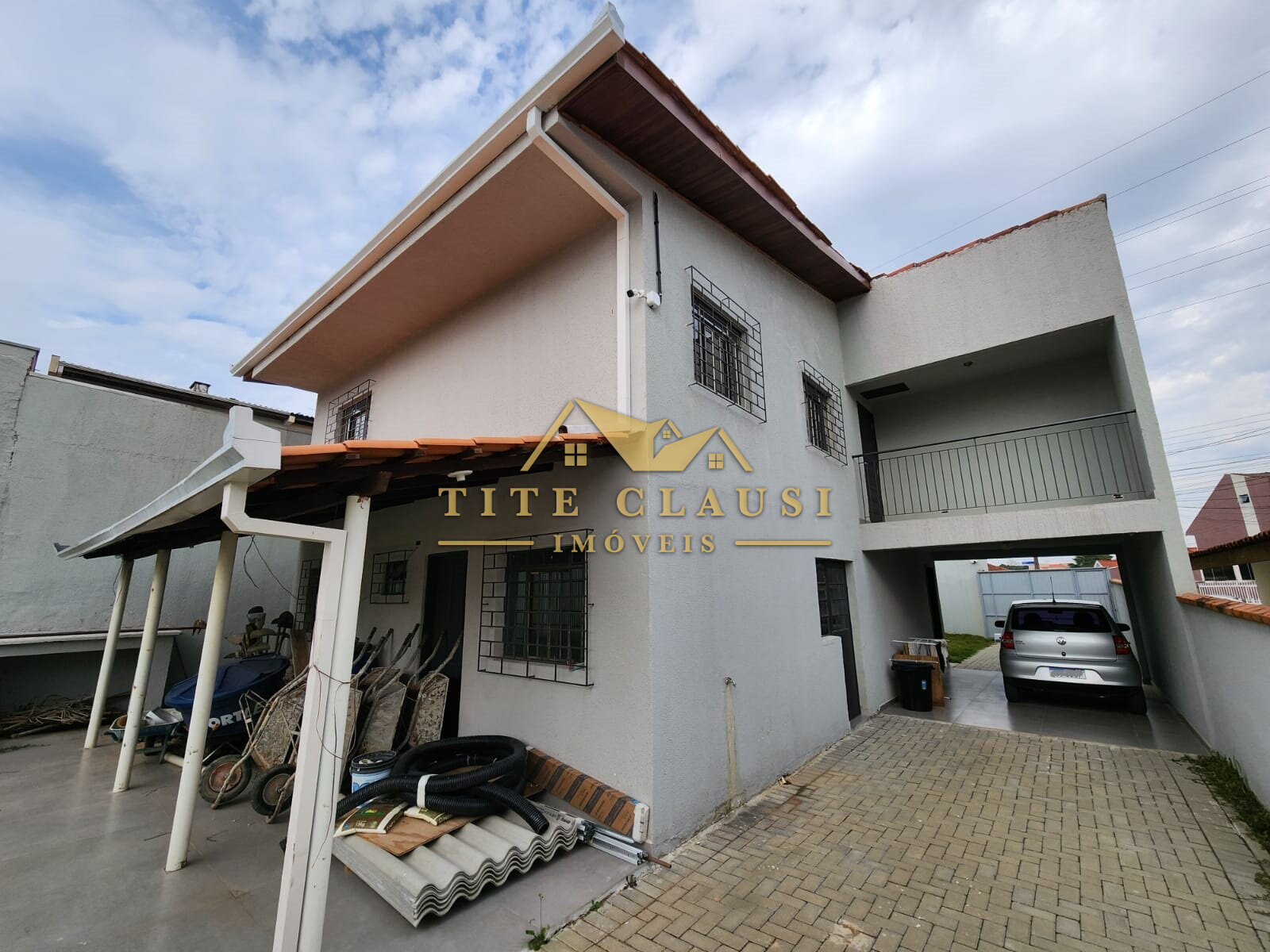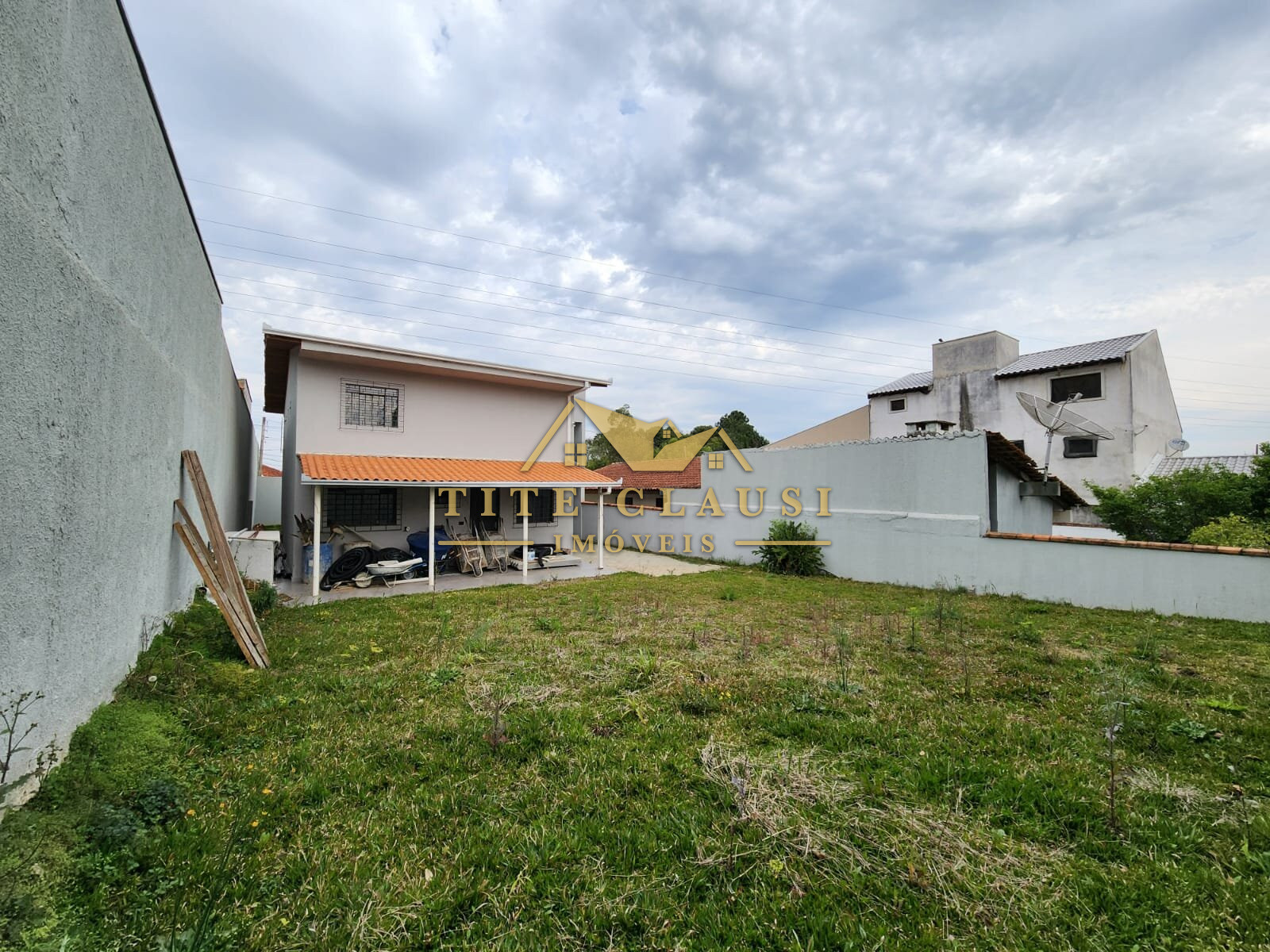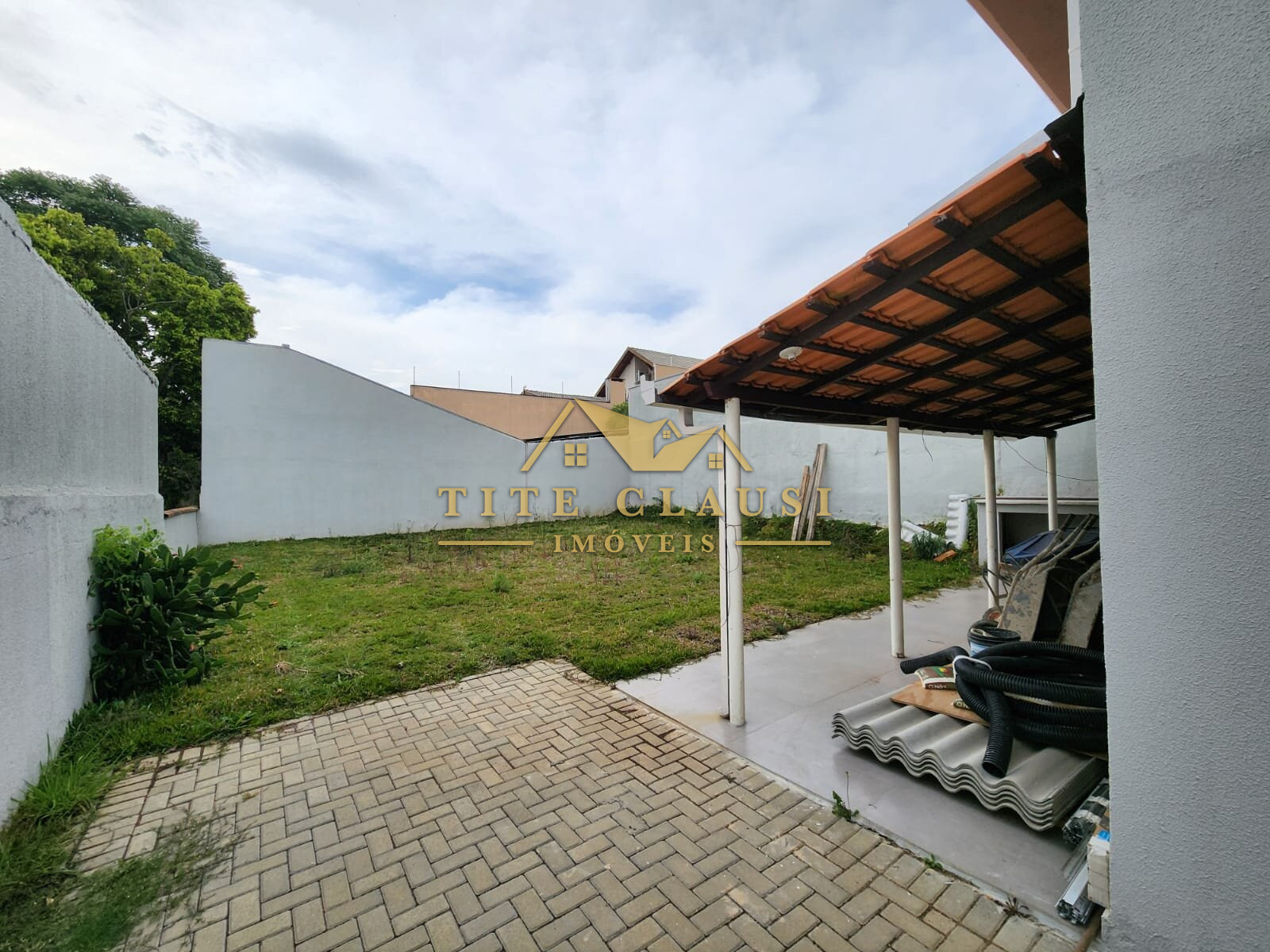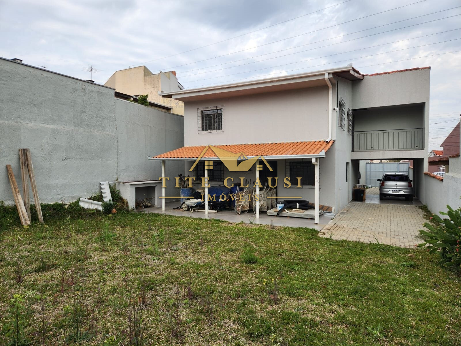 Vaga coberta para um veículo grande e espaço com calçada para pelo menos mais 3 veículos.