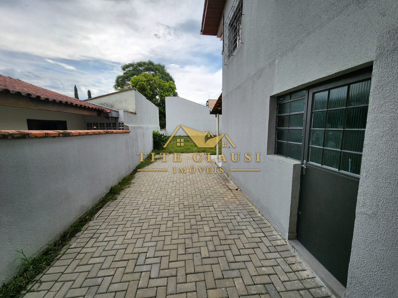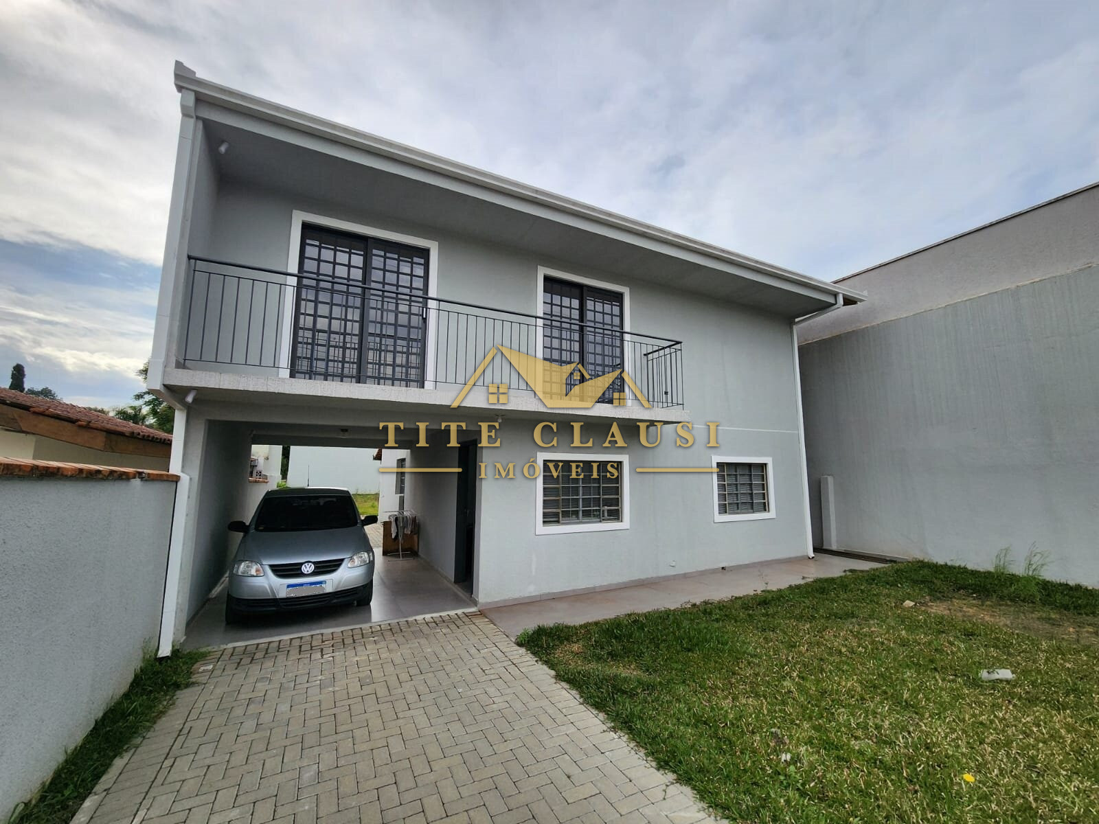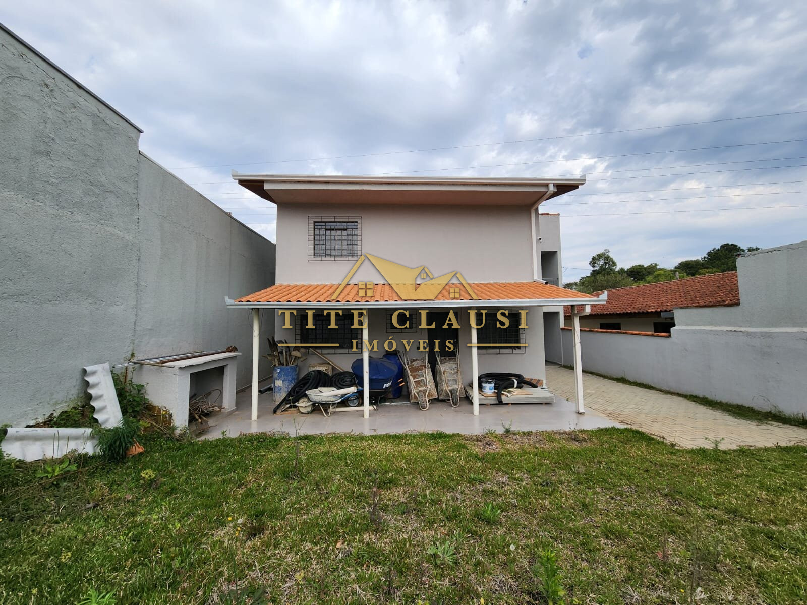 Vaga coberta para um veículo grande e espaço com calçada para pelo menos mais 3 veículos.