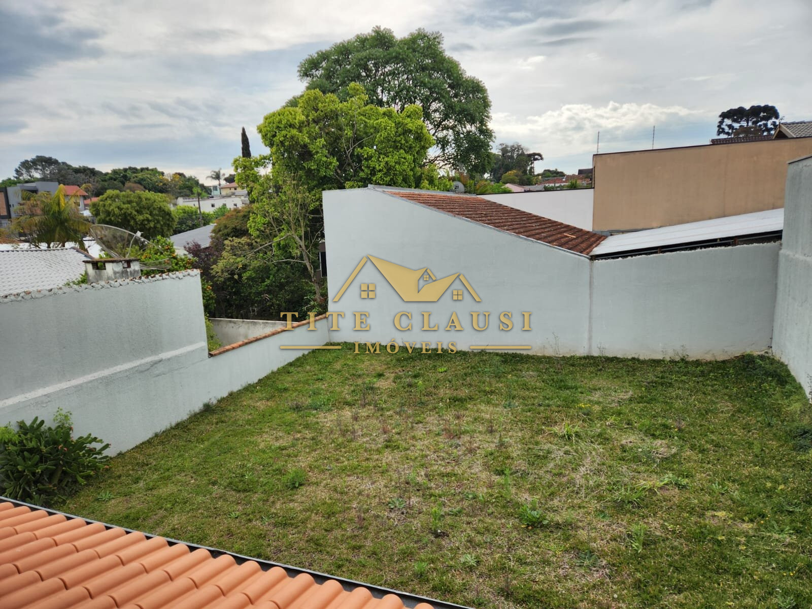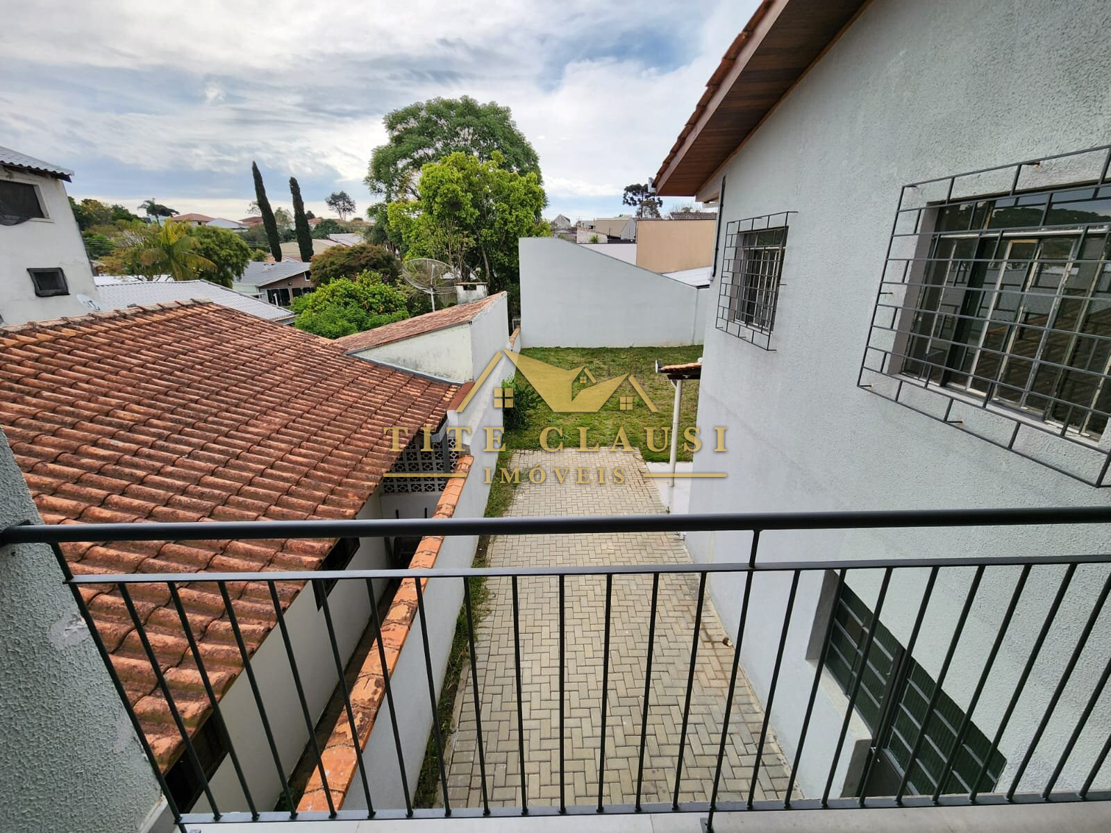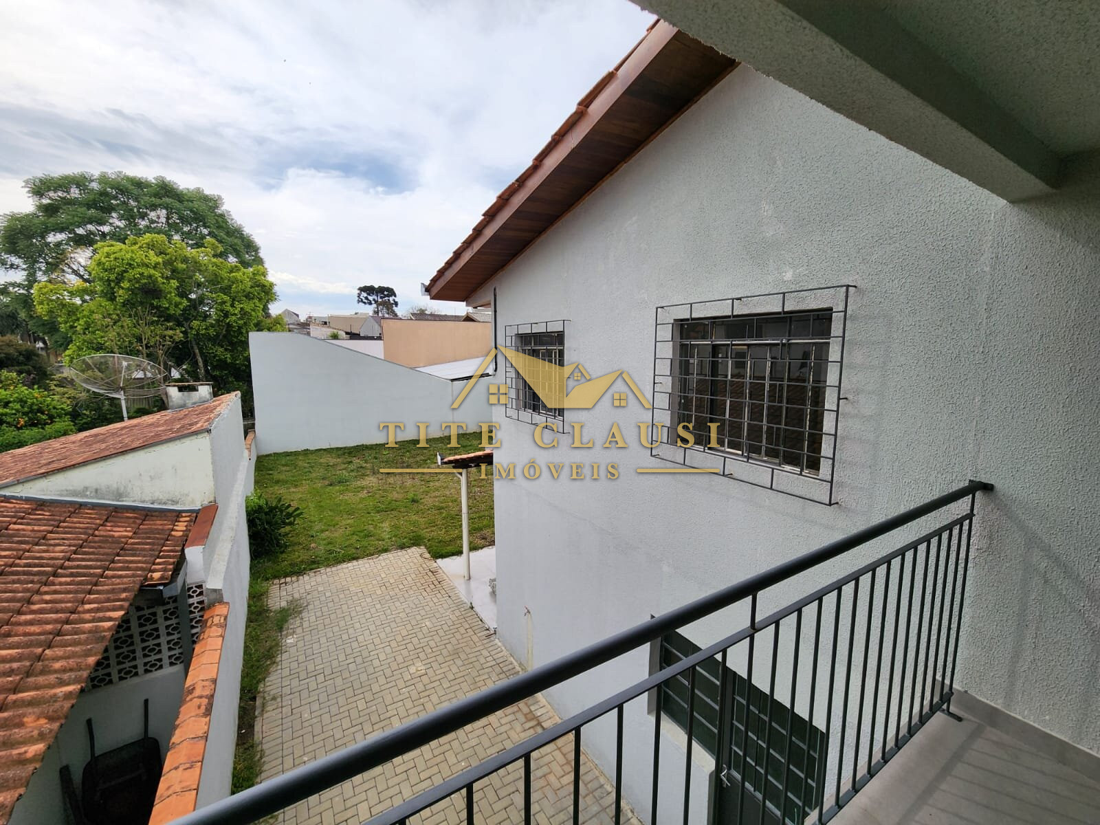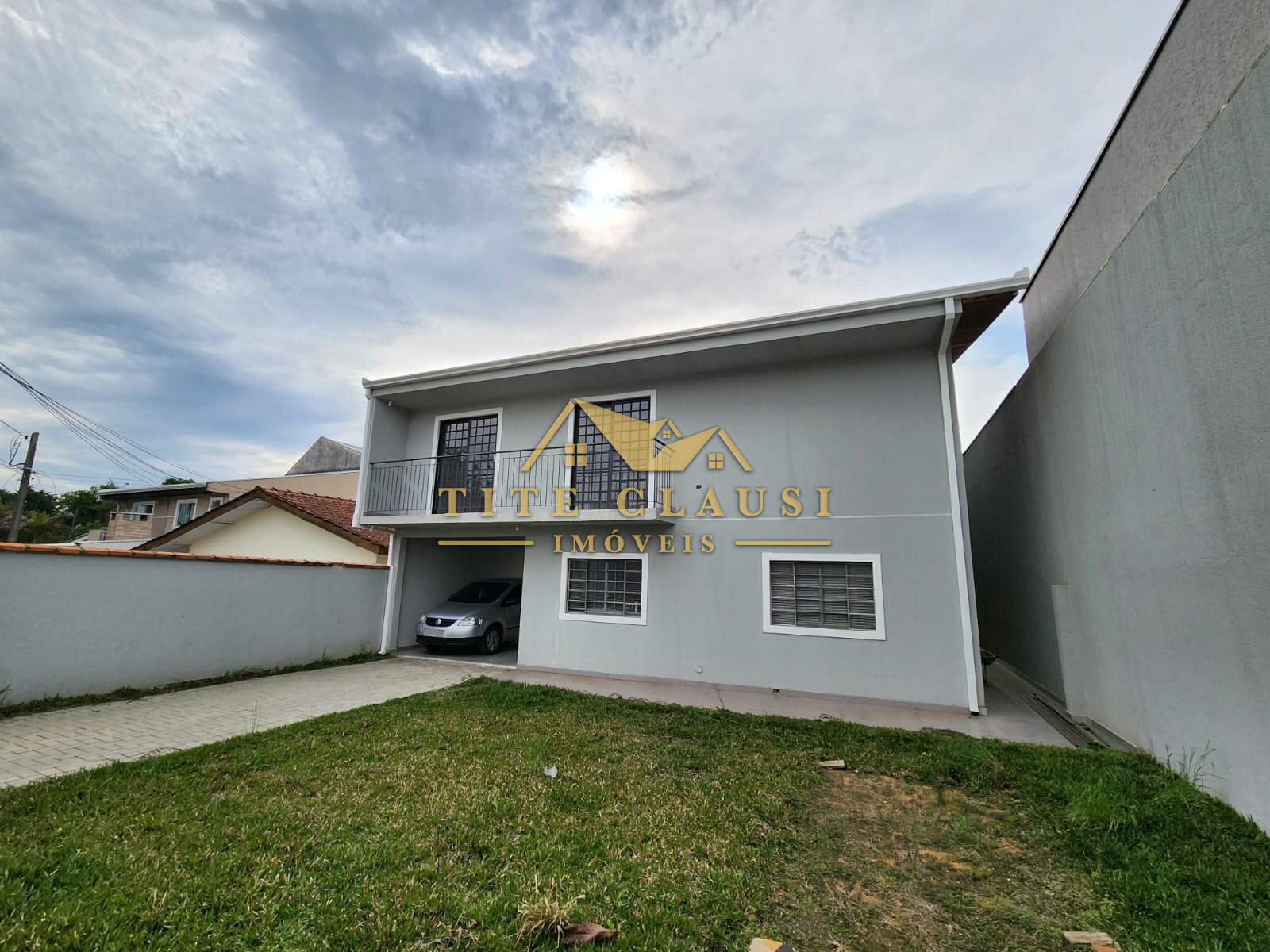 Vaga coberta para um veículo grande e espaço com calçada para pelo menos mais 3 veículos.
